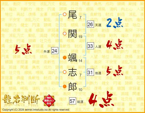 尾関颯志郎さんの総運は57画の4点!