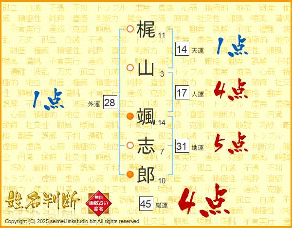 梶山颯志郎さんの総運は45画の4点!
