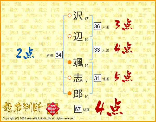沢辺颯志郎さんの総運は67画の4点!