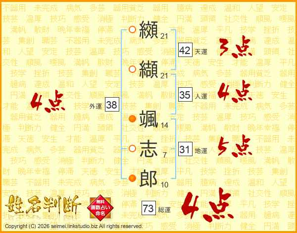 纐纈颯志郎さんの総運は73画の4点!