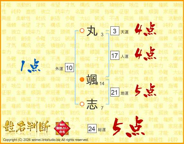 丸(3画) 颯(14画)志(7画)