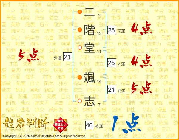 二(2画)階(12画)堂(11画) 颯(14画)志(7画)