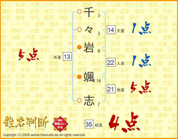 千々岩颯志さんの総運は35画の4点!