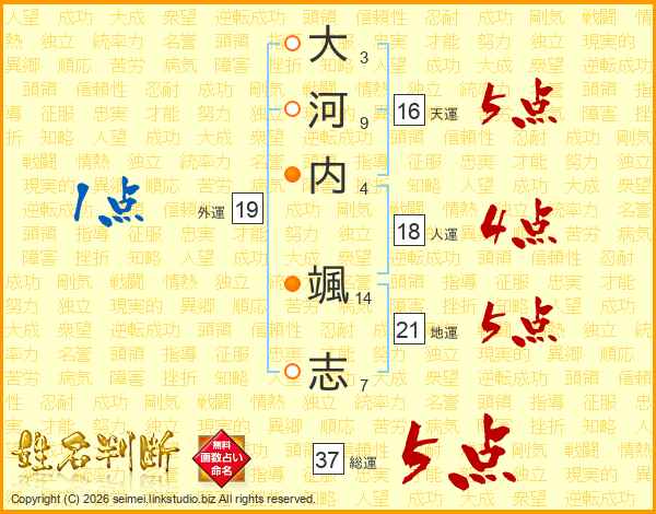 大河内颯志さんの総運は37画の5点!