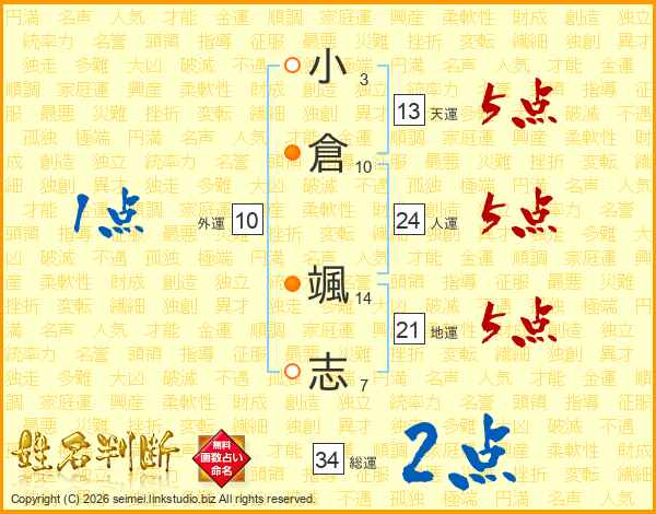 小倉颯志さんの総運は34画の2点!