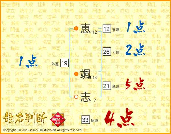 恵颯志さんの総運は33画の4点!