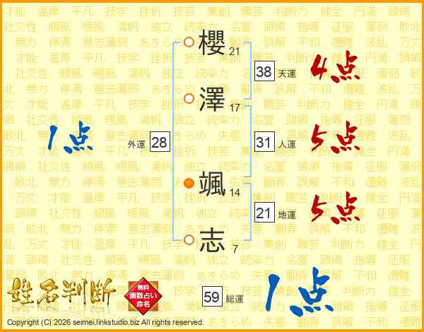 櫻澤颯志さんの天運は38画の4点!