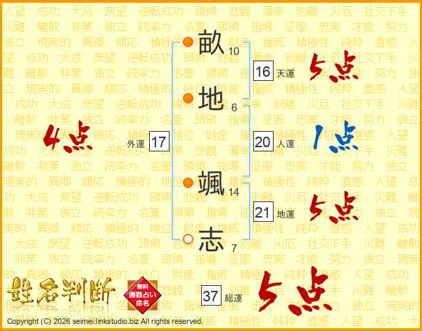 畝地颯志さんの総運は37画の5点!