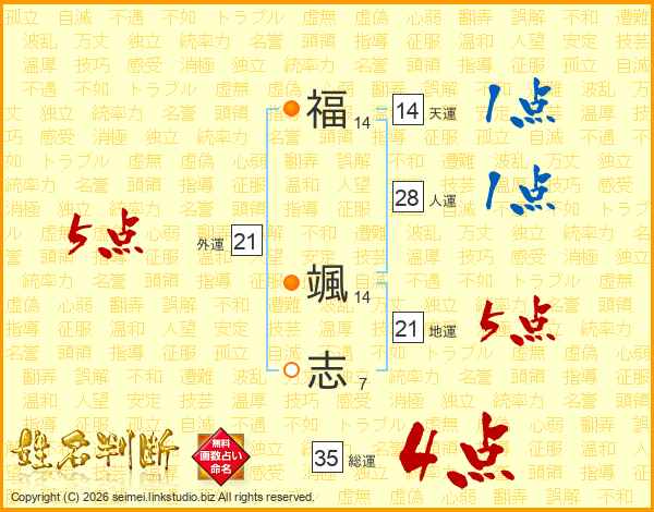 福颯志さんの総運は35画の4点!