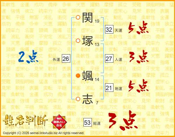 関塚颯志さんの総運は53画の3点!