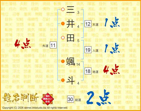 三井田颯斗さんの総運は30画の2点!
