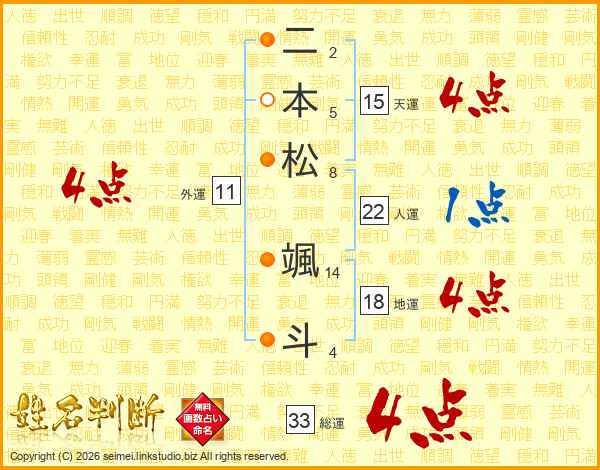 二(2画)本(5画)松(8画) 颯(14画)斗(4画)