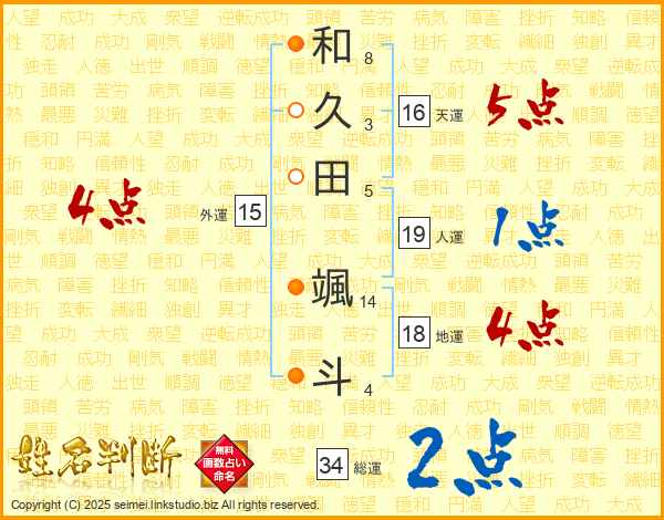和久田颯斗さんの総運は34画の2点!