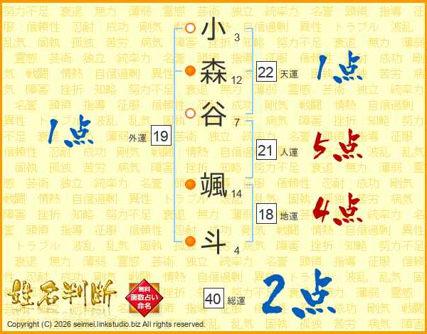 小森谷颯斗さんの人運は21画の5点!