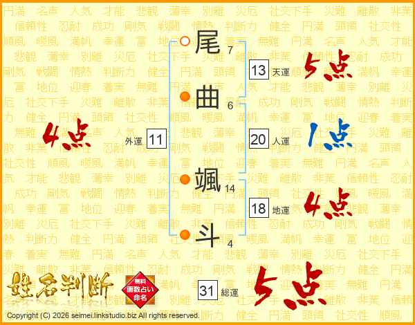 尾曲颯斗さんの総運は31画の5点!