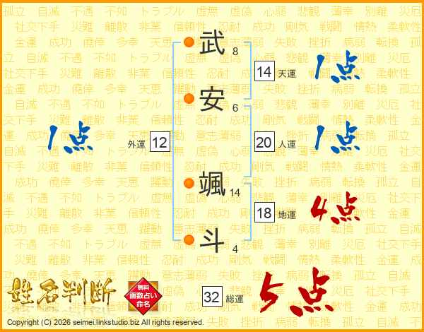 武安颯斗さんの総運は32画の5点!