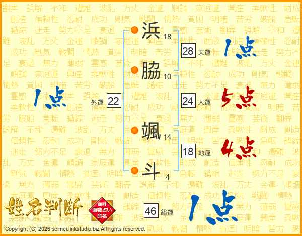 浜(18画)脇(10画) 颯(14画)斗(4画)