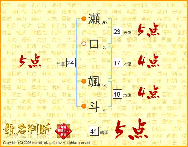 瀬口颯斗さんの総運は41画の5点!