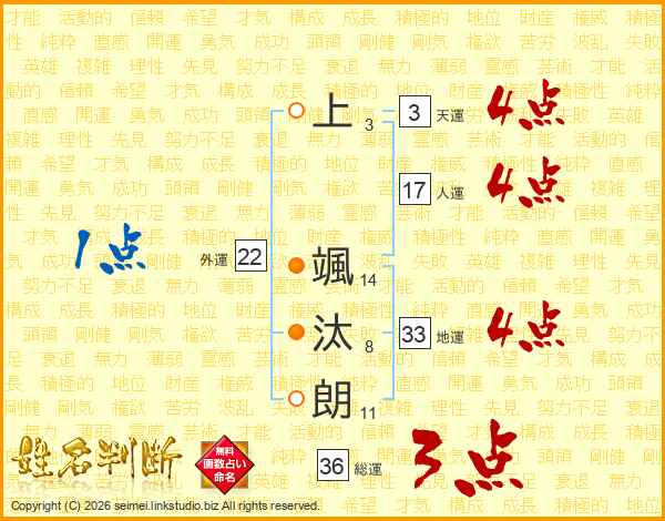 上颯汰朗さんの総運は36画の3点!