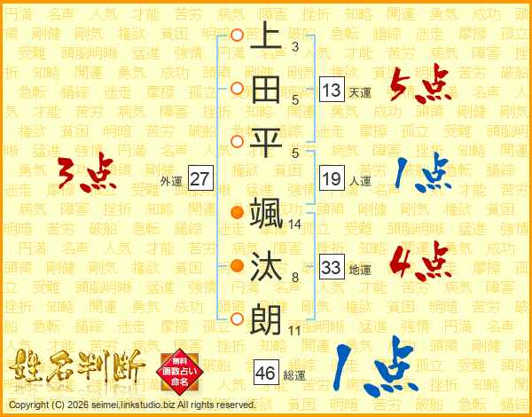 上田平颯汰朗さんの総運は46画の1点!
