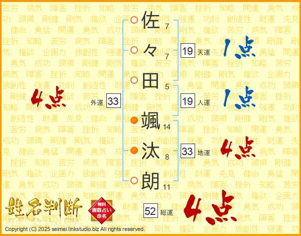 佐々田颯汰朗さんの総運は52画の4点!