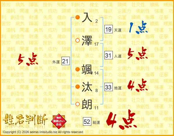 入澤颯汰朗さんの総運は52画の4点!