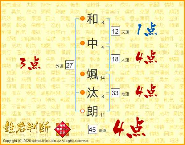 和中颯汰朗さんの総運は45画の4点!