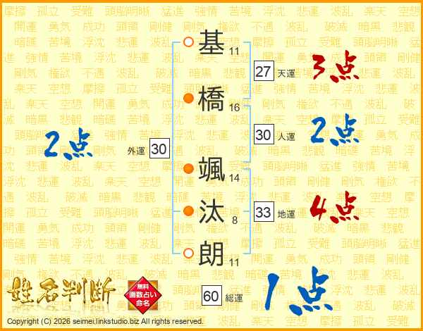 基橋颯汰朗さんの総運は60画の1点!