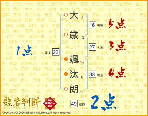 大歳颯汰朗さんの総運は49画の2点!