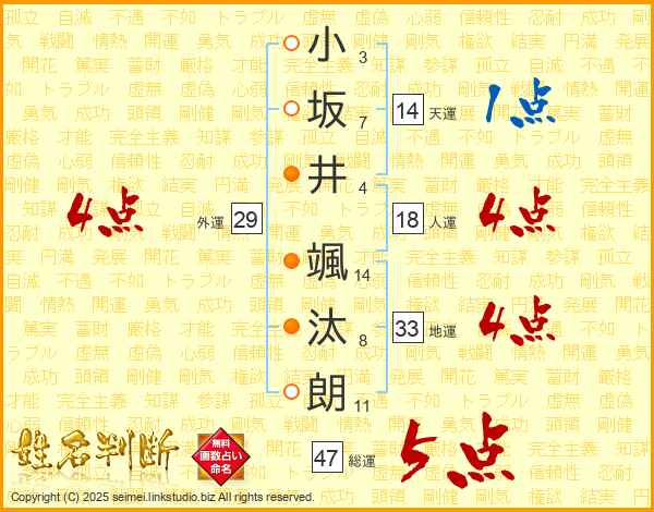 小坂井颯汰朗さんの総運は47画の5点!