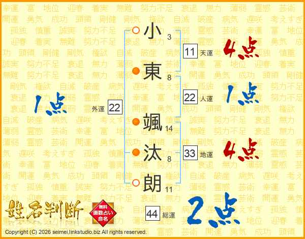 小東颯汰朗さんの天運は11画の4点!