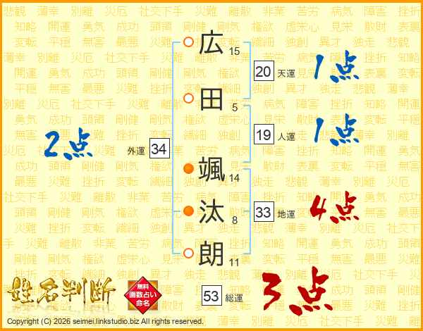 広田颯汰朗さんの総運は53画の3点!