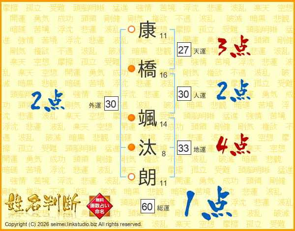 康橋颯汰朗さんの総運は60画の1点!