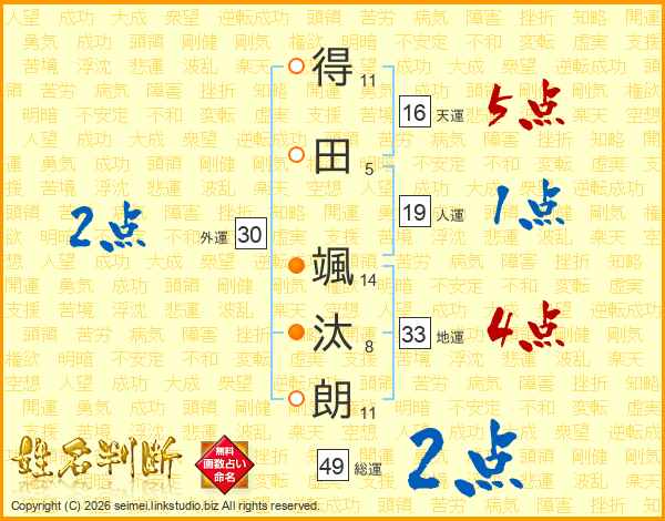 得田颯汰朗さんの総運は49画の2点!