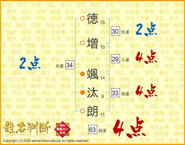 徳増颯汰朗さんの総運は63画の4点!