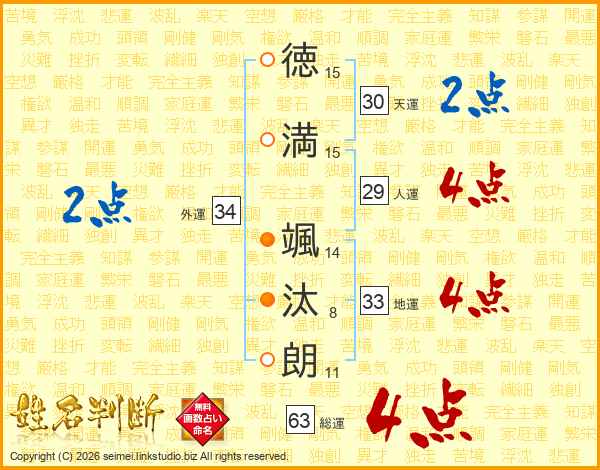 徳満颯汰朗さんの総運は63画の4点!
