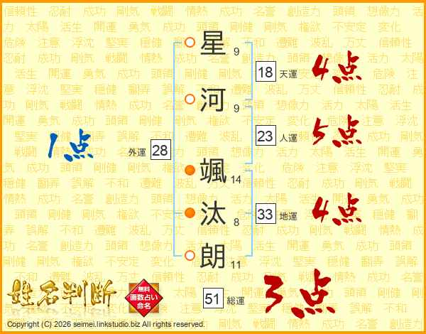 星河颯汰朗さんの総運は51画の3点!