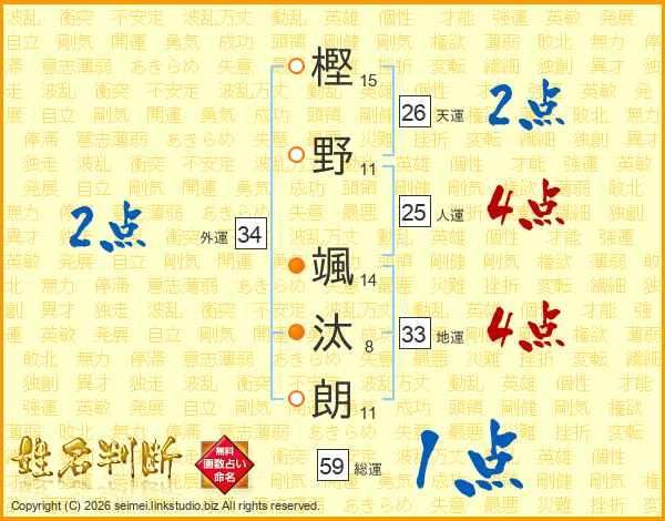 樫野颯汰朗さんの総運は59画の1点!
