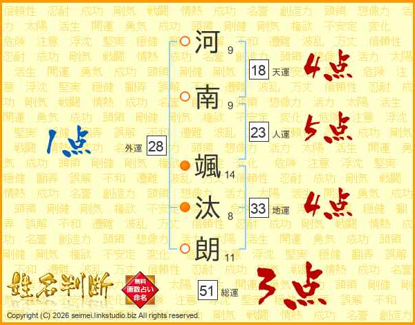 河南颯汰朗さんの天運は18画の4点!