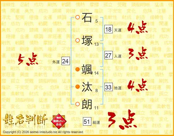 石塚颯汰朗さんの総運は51画の3点!