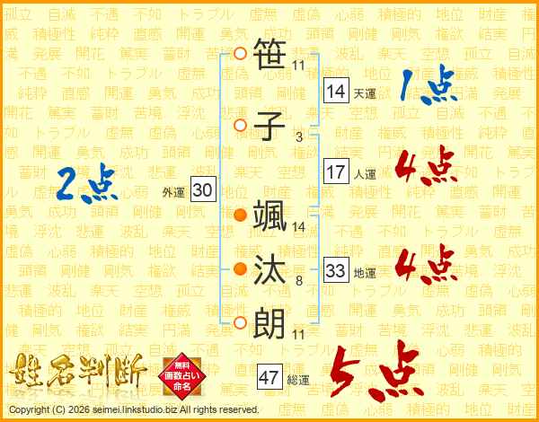 笹子颯汰朗さんの総運は47画の5点!
