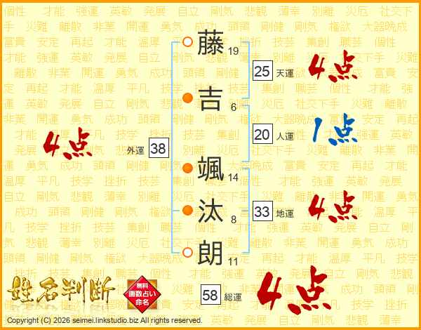 藤吉颯汰朗さんの総運は58画の4点!