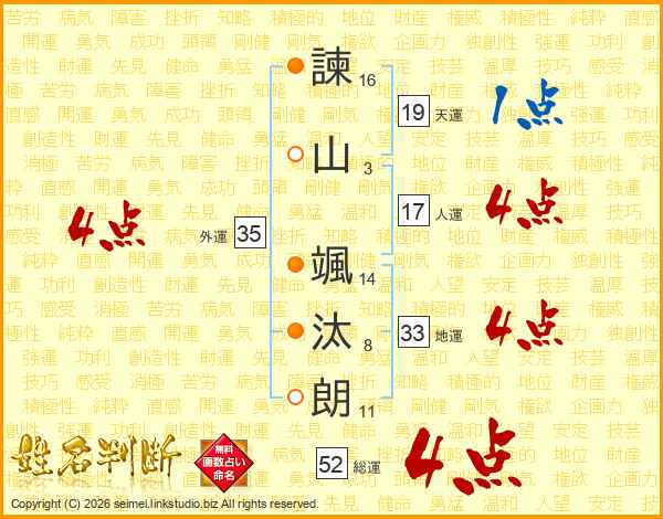 諫山颯汰朗さんの総運は52画の4点!