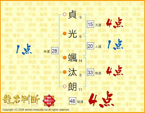 貞光颯汰朗さんの総運は48画の4点!