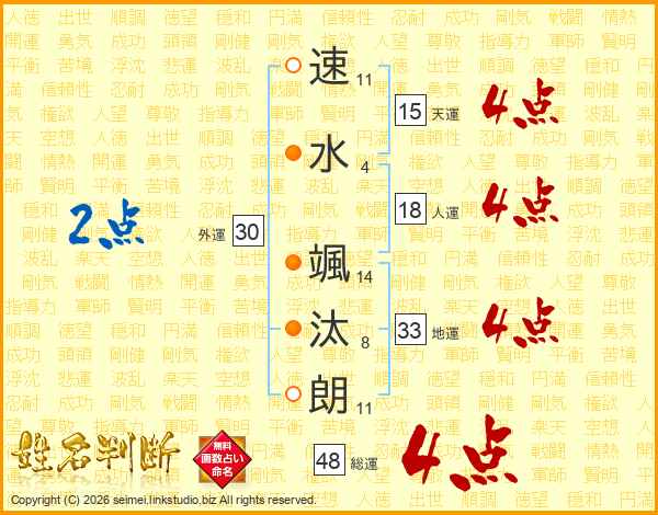 速水颯汰朗さんの総運は48画の4点!