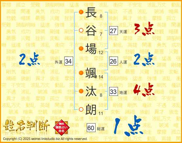 長谷場颯汰朗さんの天運は27画の3点!