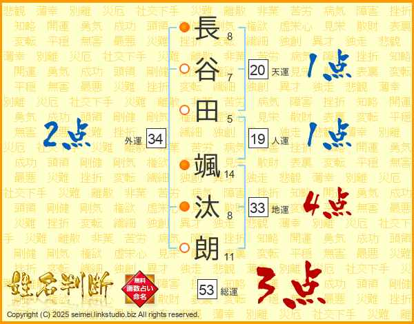 長谷田颯汰朗さんの天運は20画の1点!