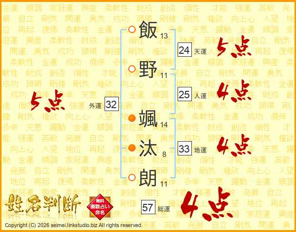 飯野颯汰朗さんの外運は32画の5点!