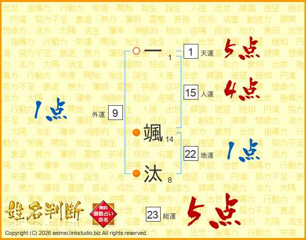 一颯汰さんの総運は23画の5点!