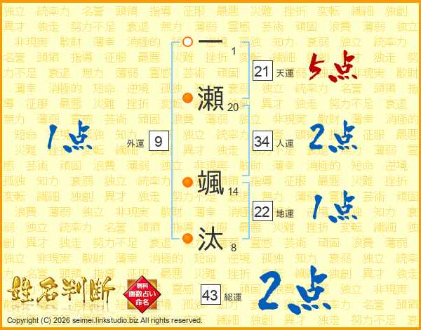 一瀬颯汰さんの天運は21画の5点!